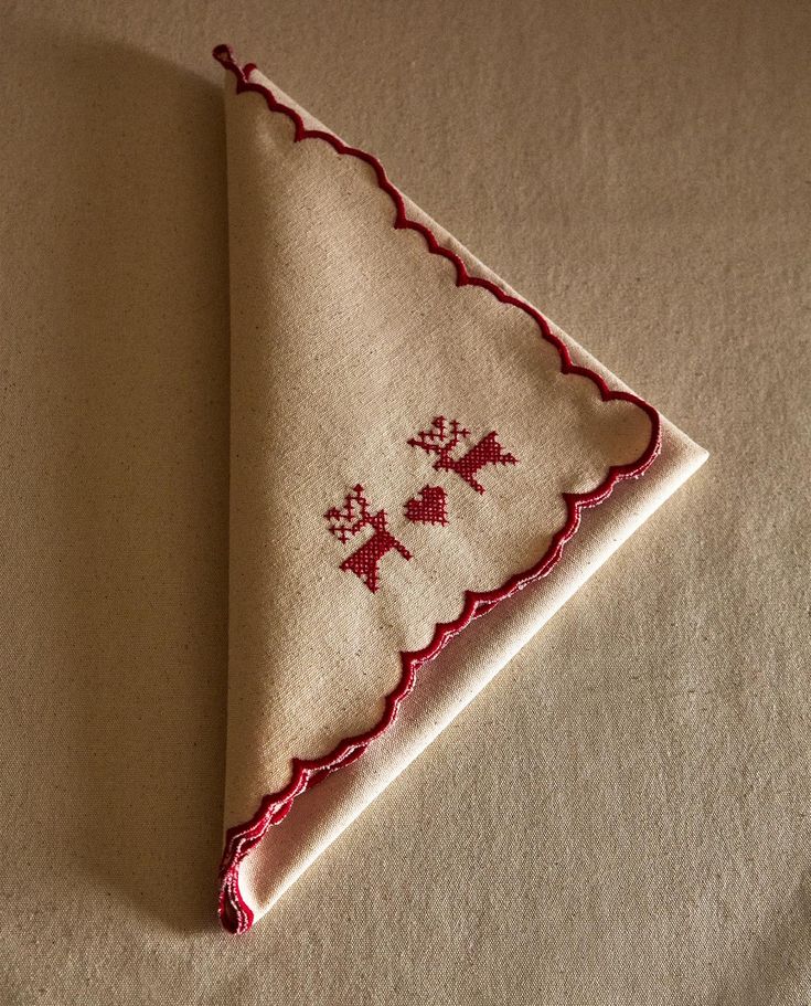 Be the first to review “ผ้าขอบหยักเย็บมือ ปักลายคำ “รักนะ””