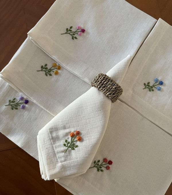 Be the first to review “ผ้าเช็ดหน้าปักดอกไม้หลากสีรอบมุม”